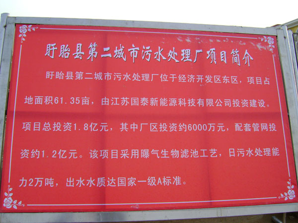 盱眙縣第二城市污水處理廠位于盱眙經(jīng)濟(jì)開(kāi)發(fā)區(qū)內(nèi),為BOT項(xiàng)目,設(shè)計(jì)規(guī)模為4萬(wàn)噸/日,分兩期建設(shè),一期工程2萬(wàn)噸/日。