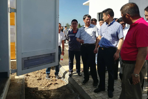 和縣縣委書記戴瑞(前排左二)視察功橋鎮(zhèn)污水處理站