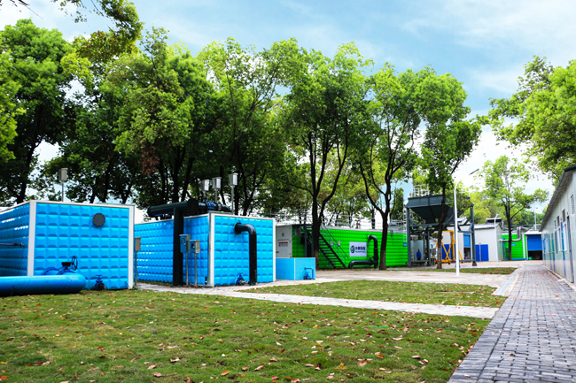 西李郢站區(qū)選址于西李郢排澇泵站東側(cè)綠地,實(shí)際占地約4480㎡,設(shè)計處理能力10000m3/d,采用我司研發(fā)的Rapid-Move®黑臭水體旁路處理系統(tǒng)——“邁巴睿?(MBBR系統(tǒng))+魔方磁®(磁混凝系統(tǒng))+魔方尊®(BAF系統(tǒng))”組合工藝產(chǎn)品。進(jìn)水從西李郢排澇泵站前端截流井取水或新建雨水調(diào)蓄池泵提取水,當(dāng)水量不足時,從巢湖南路DN1000污水管道泵提取水,出水通過現(xiàn)狀雨水排口排入南淝河。